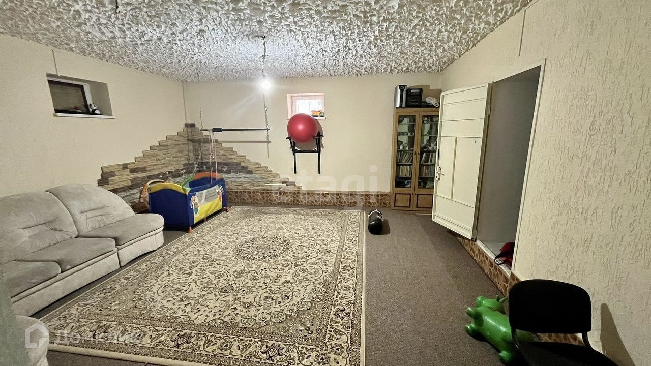 В доме 2 этажа и подвал. На 1 этаже расположены гостиная, кухня-столовая, жилая комната, раздельный санузел, гардеробная и прихожая. На 2 этаже расположены 3 спальные комнаты и совмещенный санузел. В подвале оборудованы спортзал, комната отдыха, котельная и кладовая.