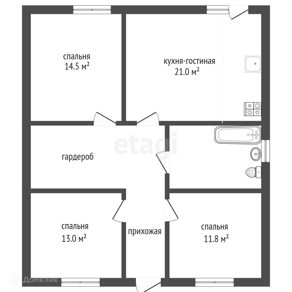 3 изолированные комнаты, раздельный санузел, кухня-гостиная, коридор, гардеробная + терасса 17 кв.м!