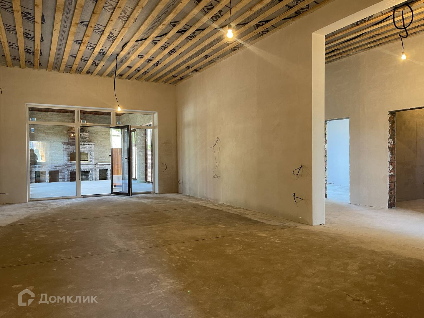 В доме 3 спальни, кухня-гостиная 45 м.