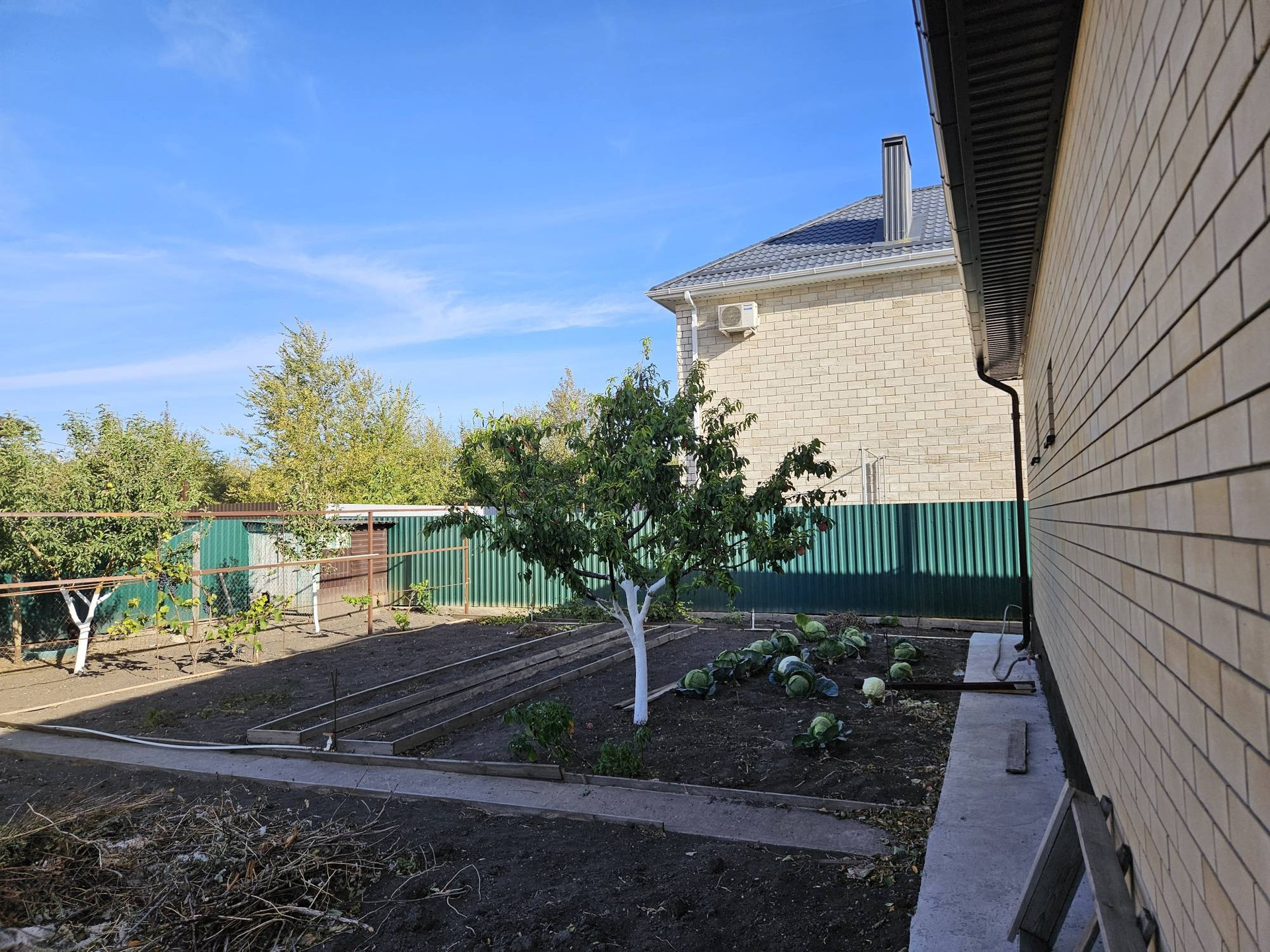 Участок 7, 5 соток, 25Х30 м, ровный, на котором, при желании можно построить ещё один дом. На участке две теплицы, беседка, плодоносные деревья, (персики, вишни, черешни, яблони, нектарины ,) кустарники (чёрная смородина, малина, ежевика), виноград, огород. Проведён водопровод по всему участку для полива. Коммуникации: электричество, газ, вода,канализация. До маршруток и магазинов 5 мин ходьбы. Дорога хорошая.