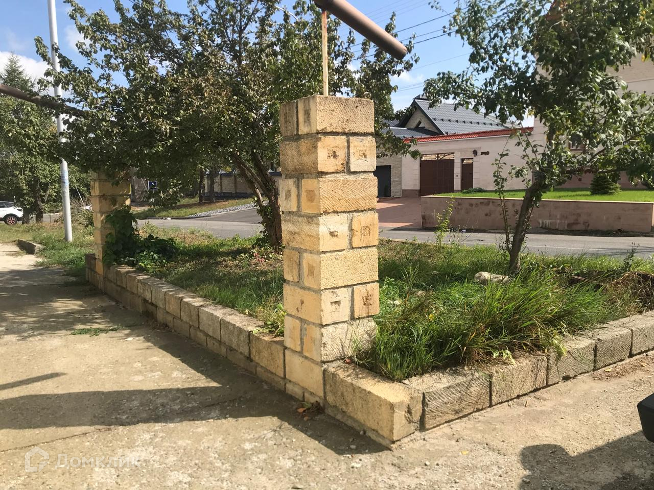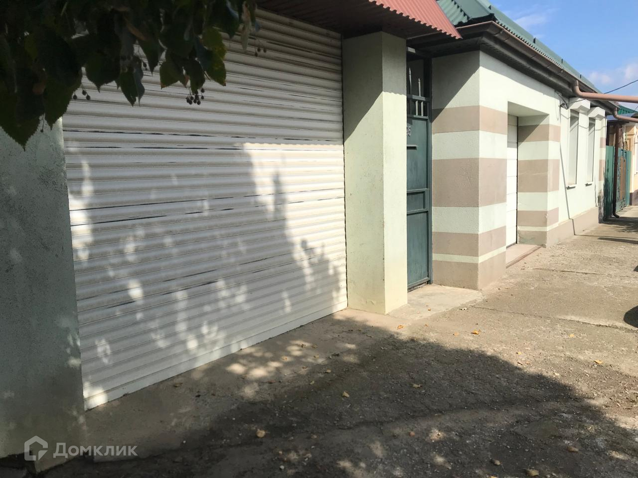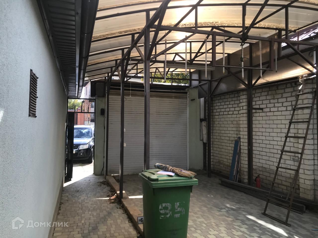 Небольшой ухоженный участок земли, двор на две машины - накрыт навесом. Установлены автоматические ворота как в гараж, так и на въезд во дво , окна на фасаде закрыты ролл-ставнями.