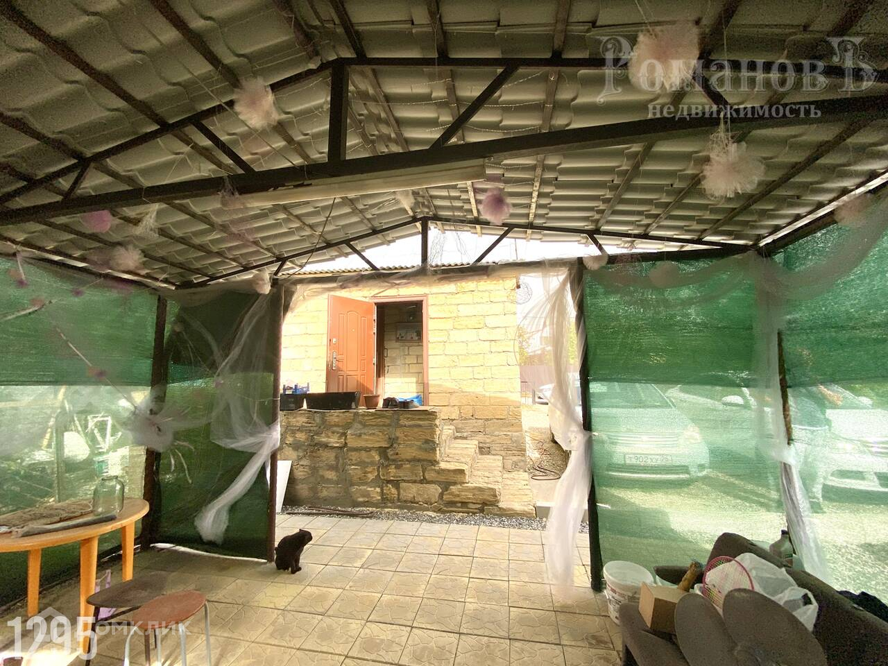 На участке есть большой навес. Много плодовых деревьев:  яблоня, черешня, вишня; айва.  Есть виноград. Также на участке много роз, есть кусты сирени.