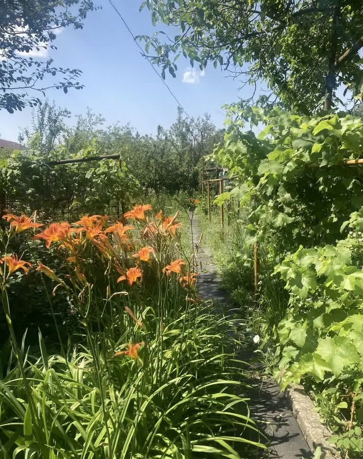 Земельный участок с фруктовыми насаждениями, поляной клубники, цветами и виноградником!