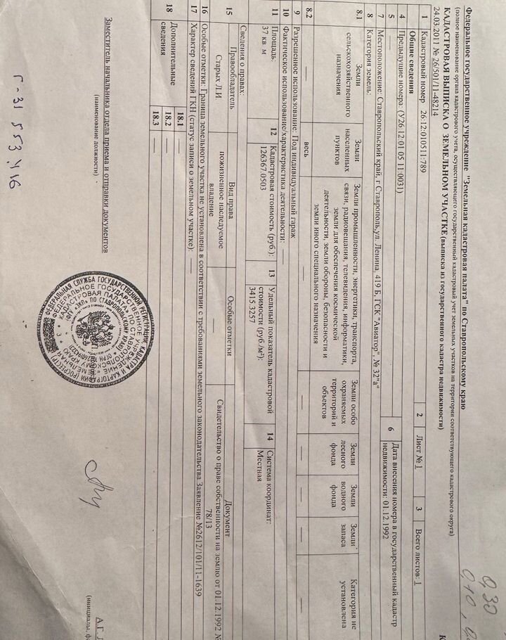 Кирпичный гараж, 30 м2, на продажу в Ставрополе, территория ГСК Авиатор, 32