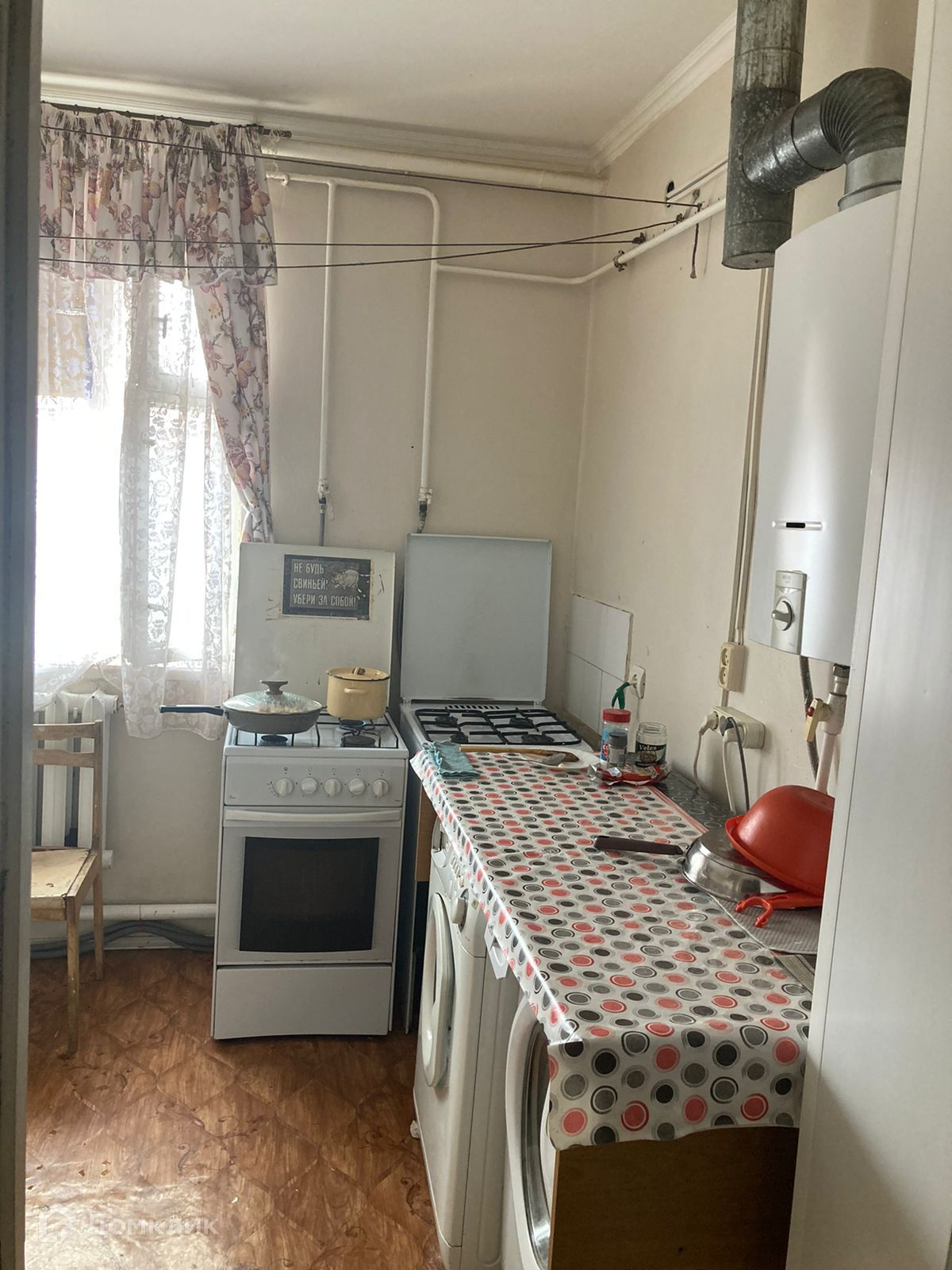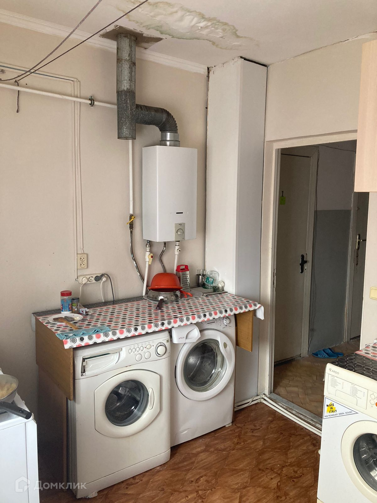 На этаже кухня, постирочная, два санузла, один душ. В комнате остается шкаф купе, диван, двух ярусная кровать, сплит система, кухонная мебель, система хранения вещей, стиральная машина.