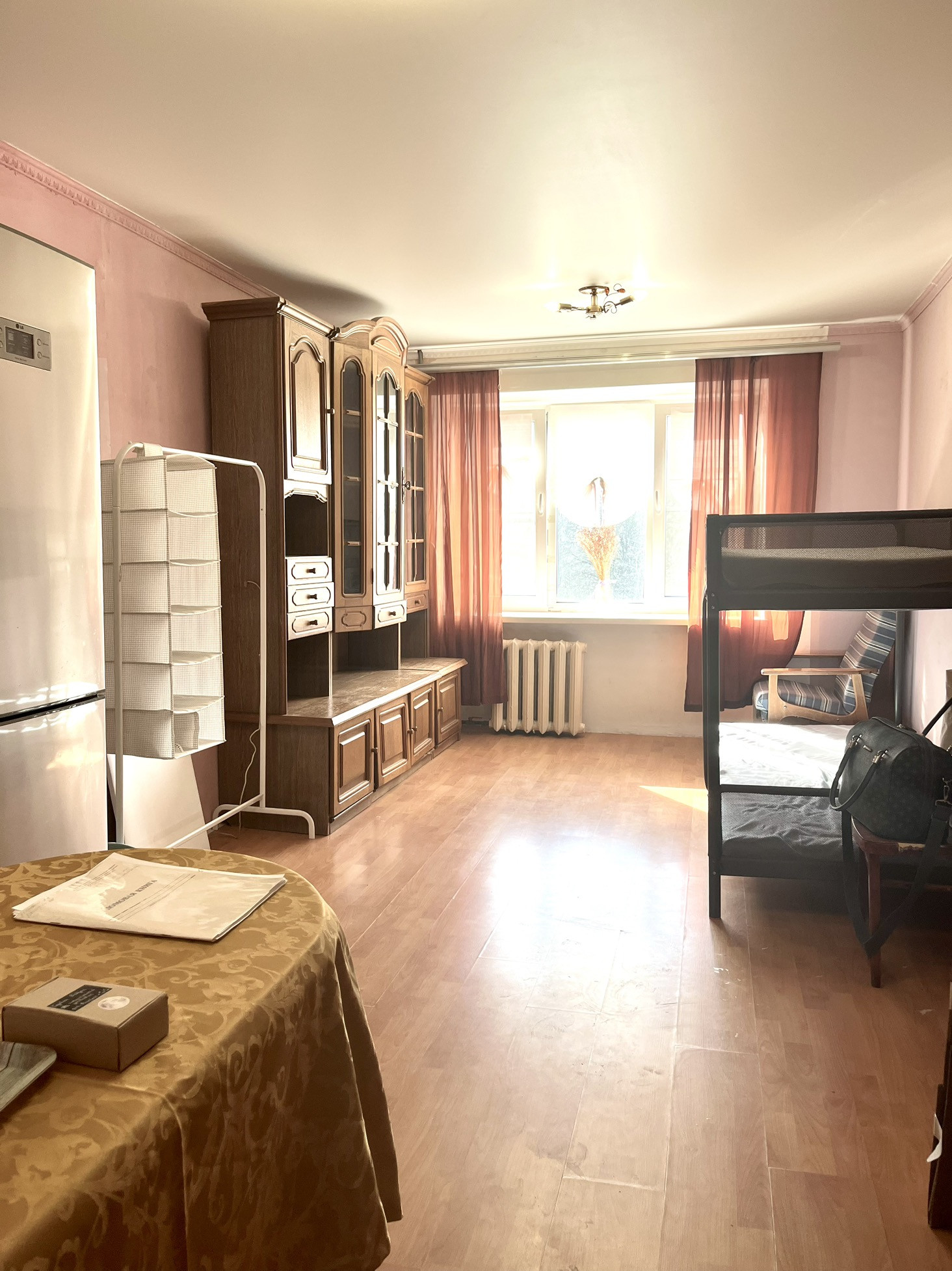 Продается просторная комната в семейном общежитии . Помещение чистое и светлое , при продаже остаётся вся мебель и техника. Двух ярусная кровать прекрасно подойдёт для полноценного отдыха, с экономией места в комнате. Также остаётся стиральная машина LG, в построчной комнате .  Развитая инфраструктура, шаговая доступность остановки общественного транспорта, два детских садика, школа . Рассматриваю любой вид расчета, обременений нет.