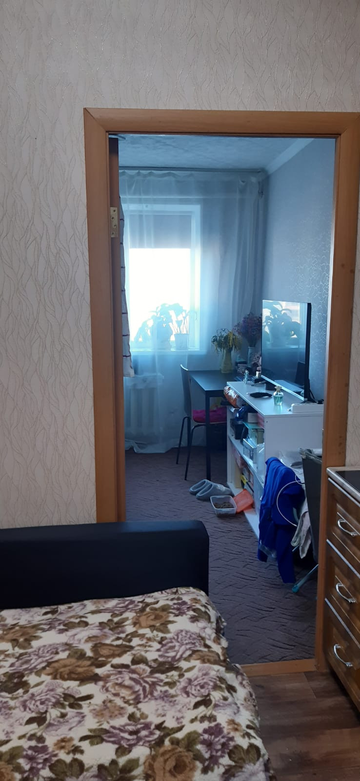 Продаю комнату на 5 этаже. Из мебели оставляю все. Комната разделена на две отдельные комнаты, в первой кухня во второй спальня. В кухне линолеум, в спальне ковролин. Есть кондиционер. Он так же работает и на обогрев. Зимой в комнате очень жарко батарея большая, есть возможность убавлять. Общежитие прошло капремонт крыши, заменены трубы отопления, горячей и холодной воды, сантехника на кухне, в туалетах и прачечной.  Видео наблюдение на каждом этаже, кодовые замки на каждом этаже. Есть места для колясок и велосипедов на 1 этаже под камерой. В радиусе 800 метров есть все необходимое поликлиники, Мфц, школы, детсады, пятёрочка, магнит,сбербанк и много других нужных объектов. НА все вопросы ответим по телефону, если не смогли дозвониться пишите. Подходят все виды расчёта, в собственности более 3 лет. Помогу в оформлении.