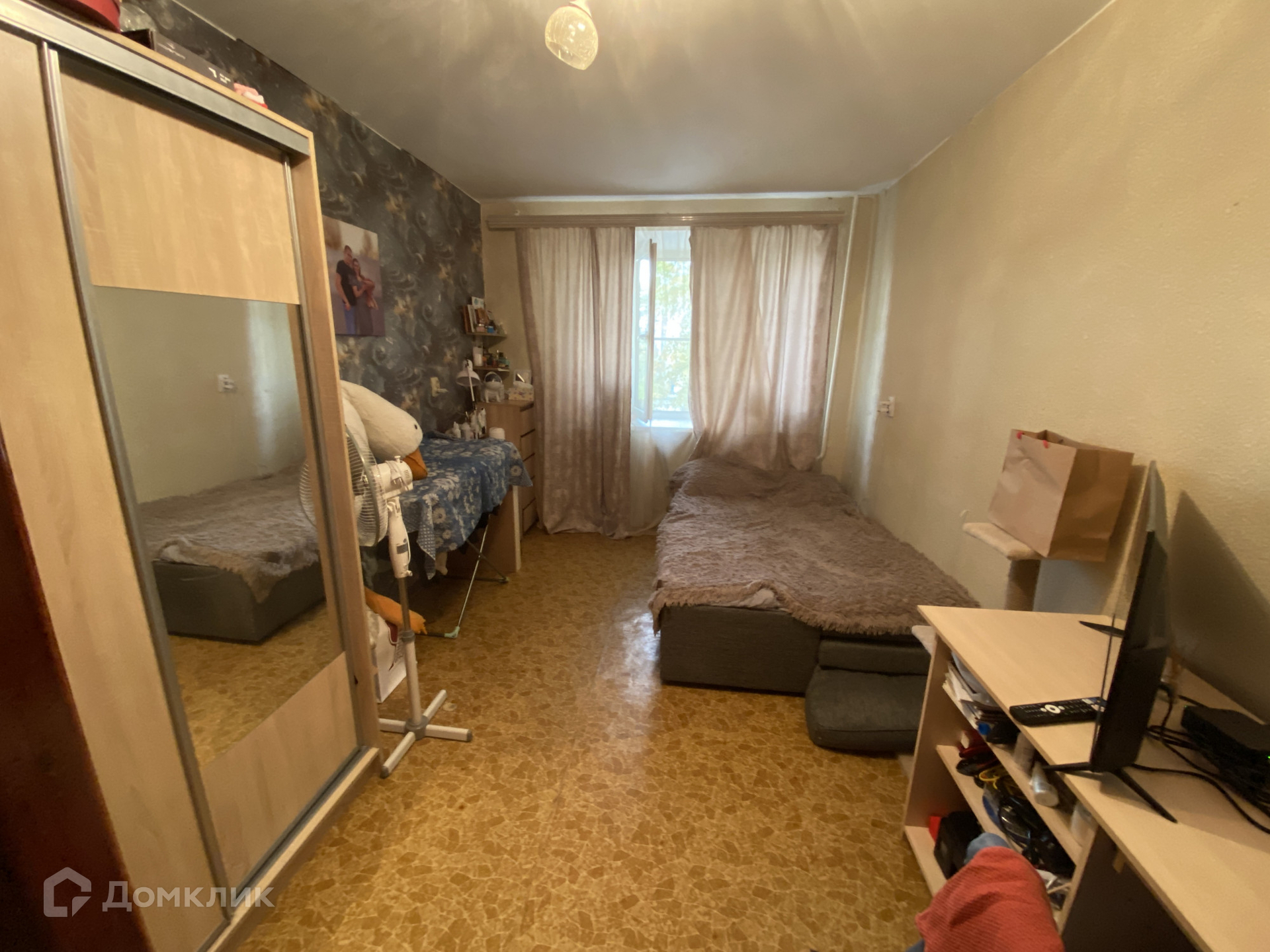- Комната разделена на 2 части: спальня, кухня.