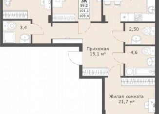 Общая площадь: 109.4 м2