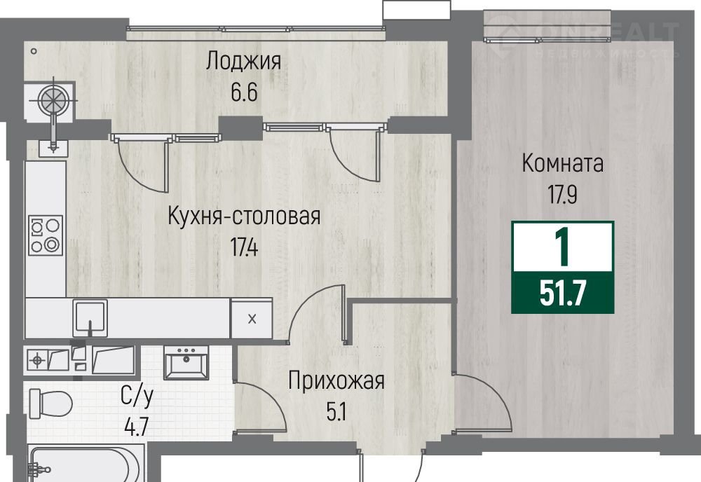 Количество комнат 1