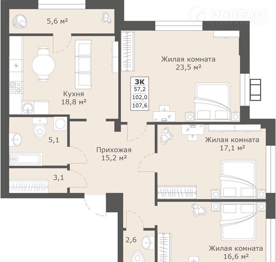 Общая площадь 107.6 м2