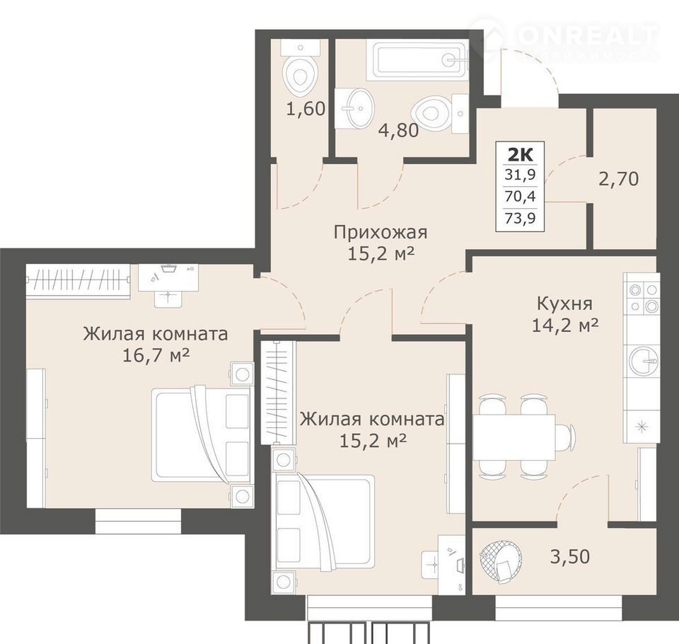 Общая площадь 73.9 м2