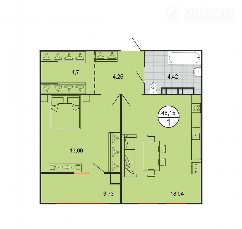 Общая площадь 47 м2