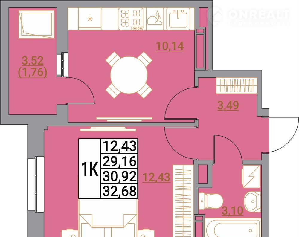 Общая площадь 32.7 м2