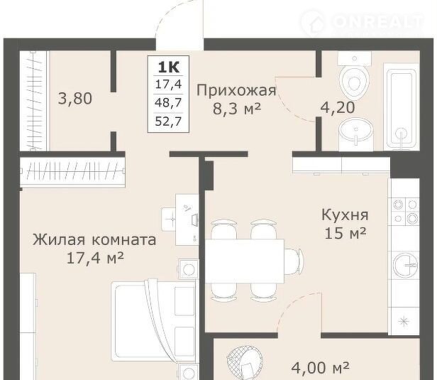 Общая площадь 53.7 м2