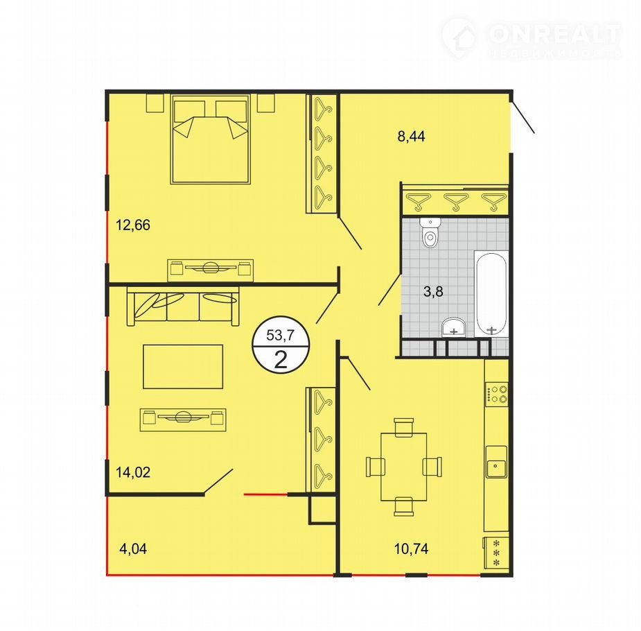 Общая площадь 54 м2