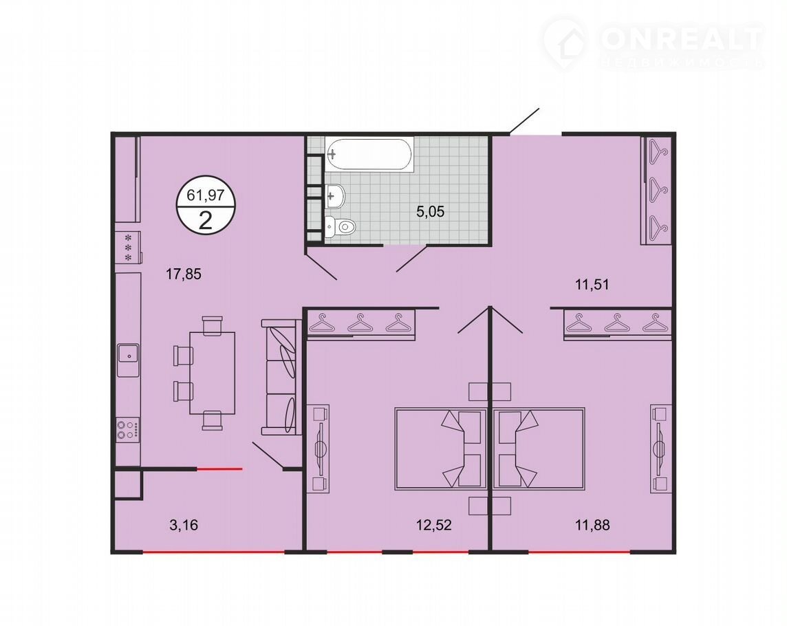 Общая площадь 62 м2