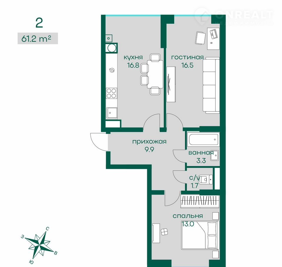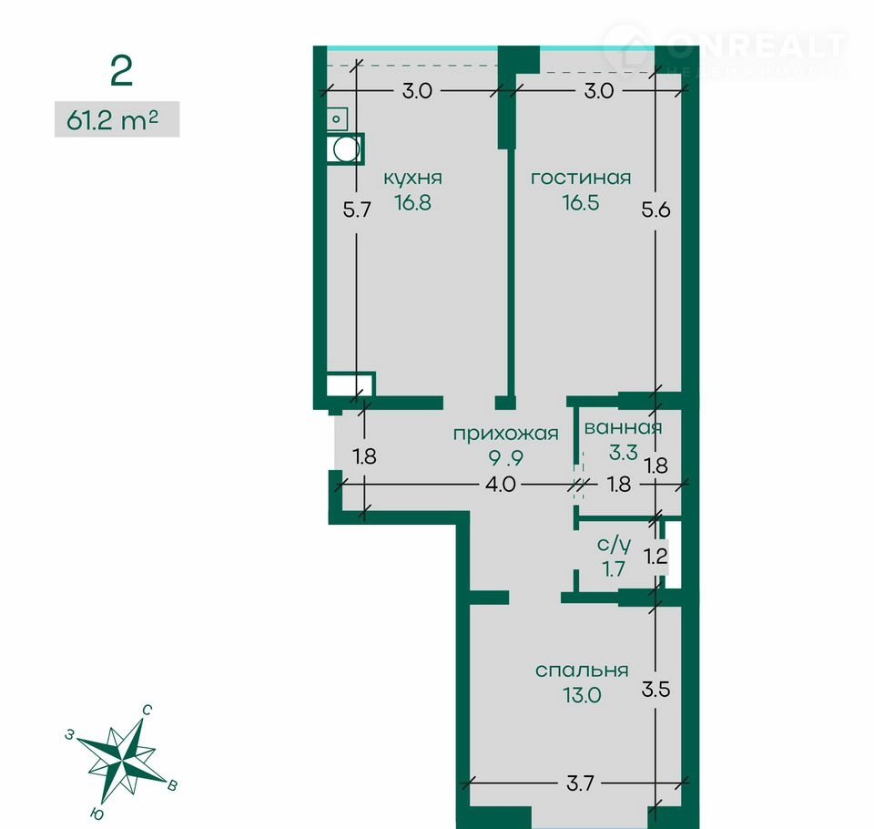 Количество комнат 2