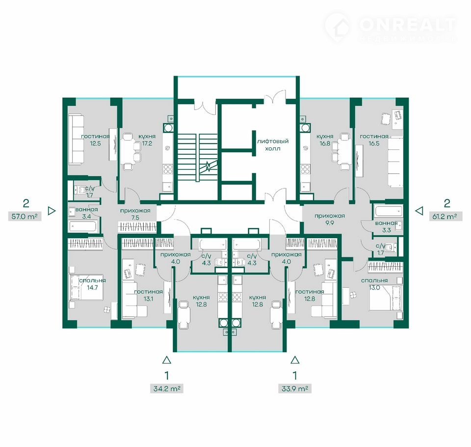 Общая площадь 62.1 м2