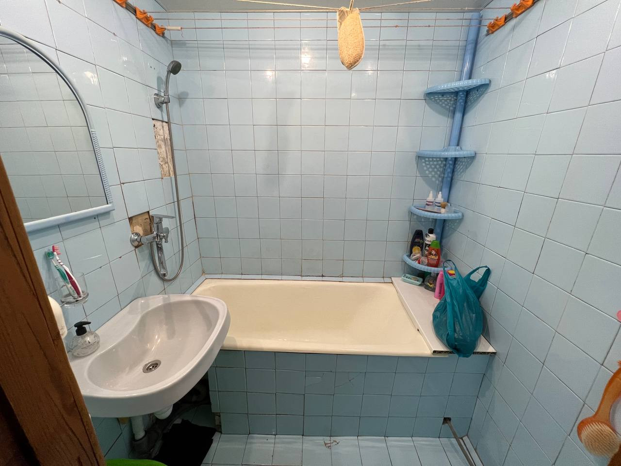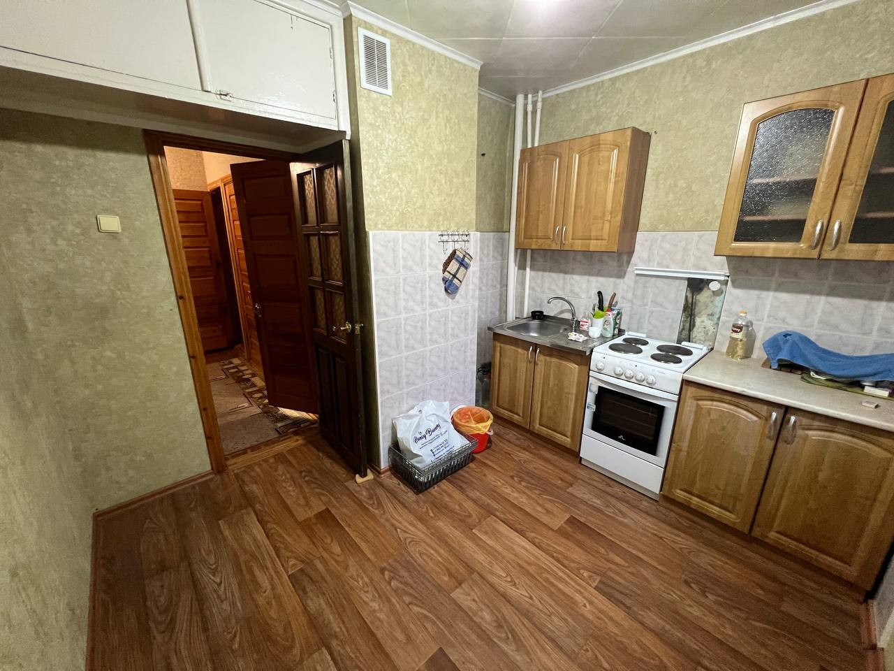 ✅шкаф в прихожей и вся кухня остаются, стоит чугунная ванна