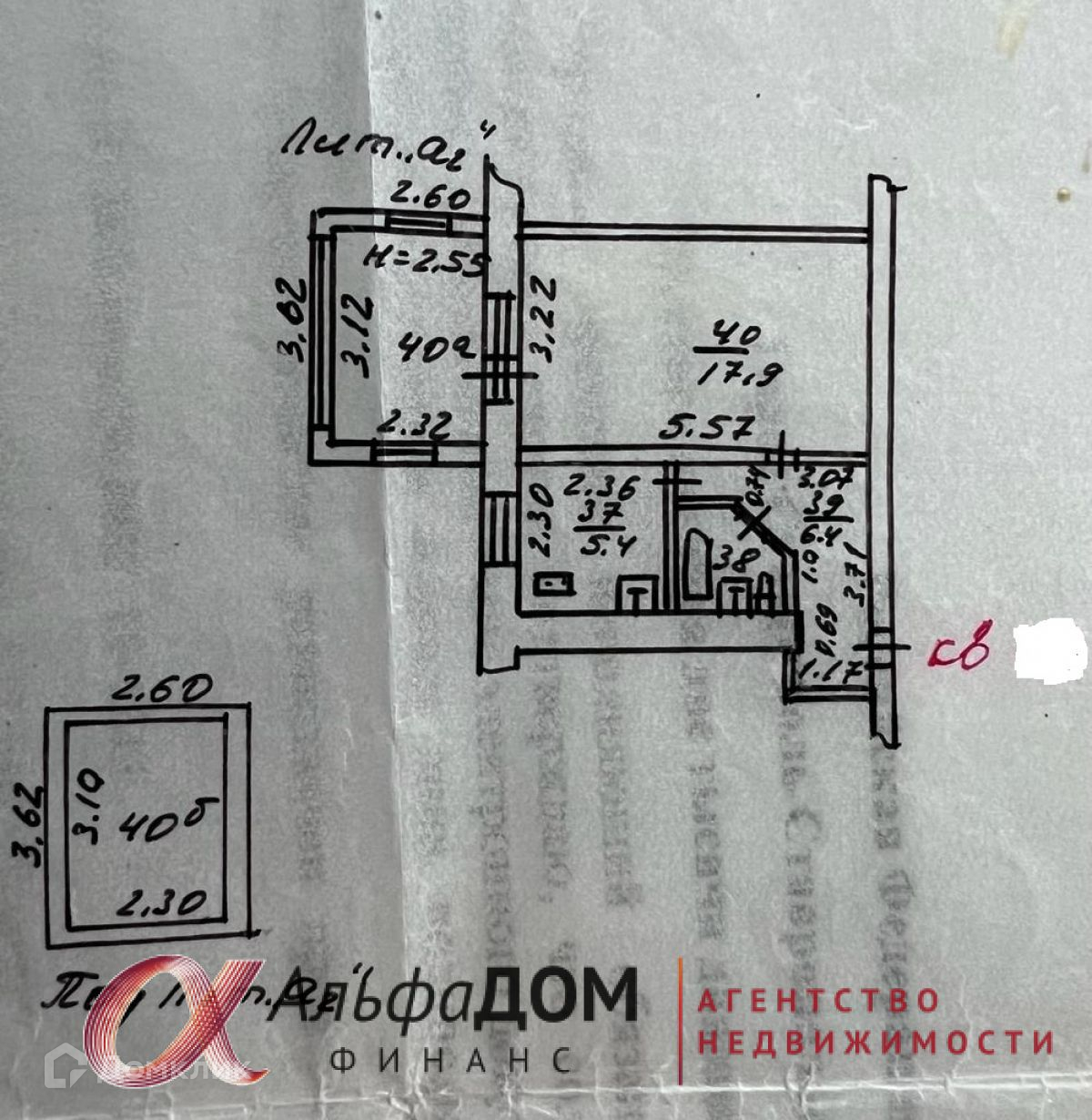 Общая площадь 39 м2
