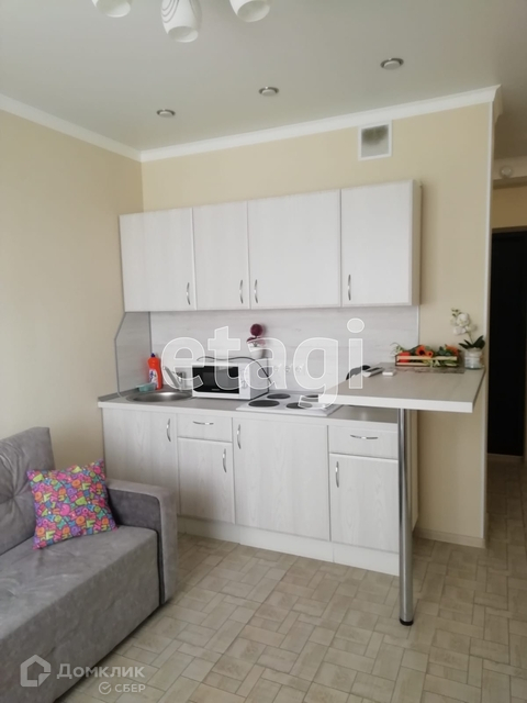 В квартире есть все необходимое для проживания: кухонный гарнитур, раскладной диван, платяной большой шкаф, два барных шпоновых стула (Икеа), шторы, рулонные тканевые жалюзи на лоджии, красивый торшер (Икеа), картина, люстра. Из техники: электрическая варочная панель, кондиционер, стиральная машина, микроволновая печь, электрочайник, телевизор, холодильник. Также остаются полка для обуви и вешалка для вещей.