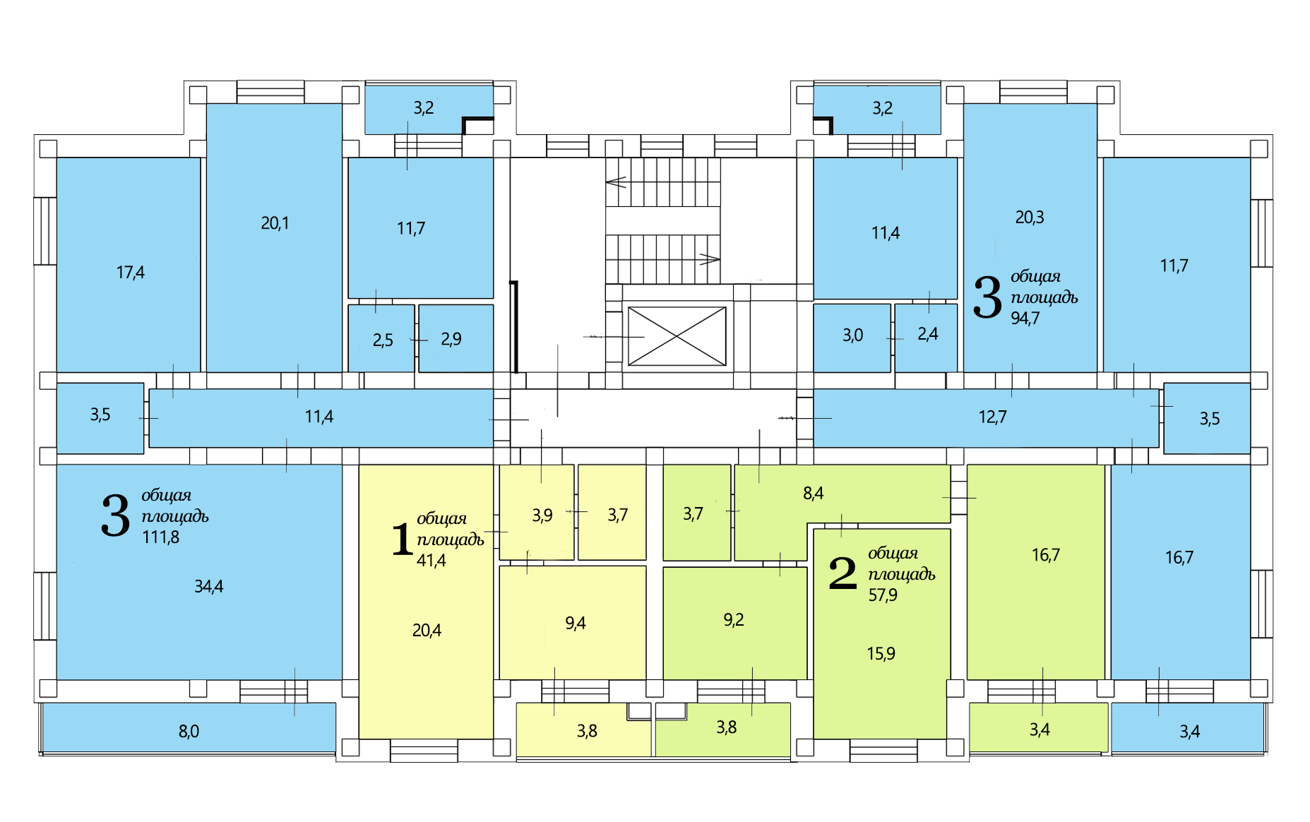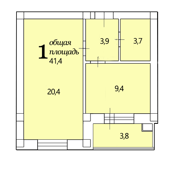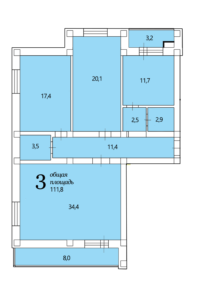 Общая площадь 61.8 м2
