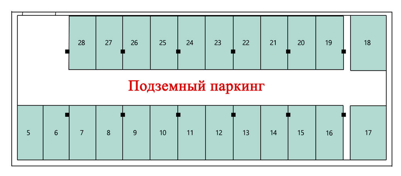✔ Подземный паркинг, в который возможно спуститься на лифте, не выходя на улицу