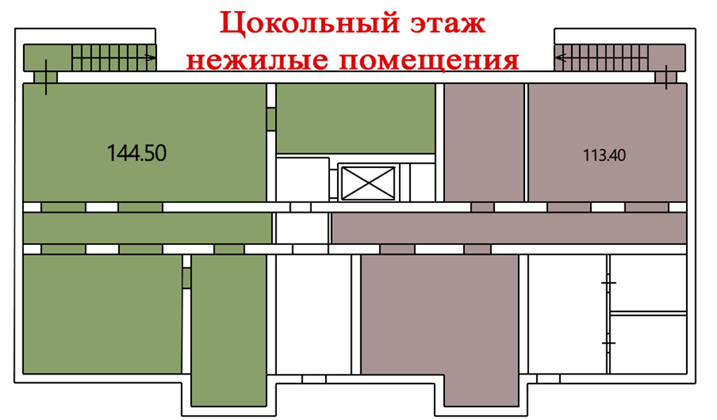 ❕ Нежилые помещения в цокольном этаже 144.5 + 113.4 кв.м.