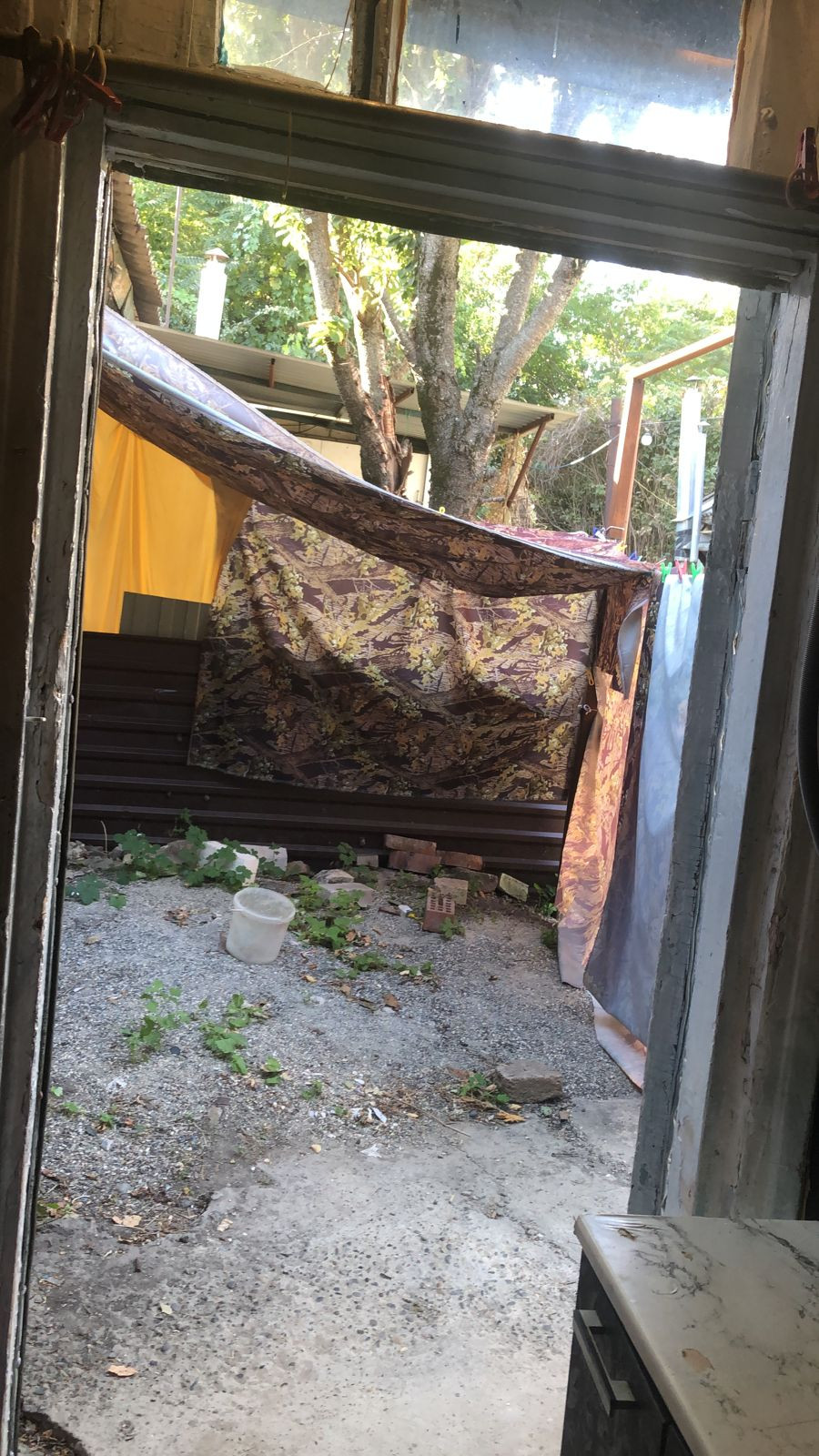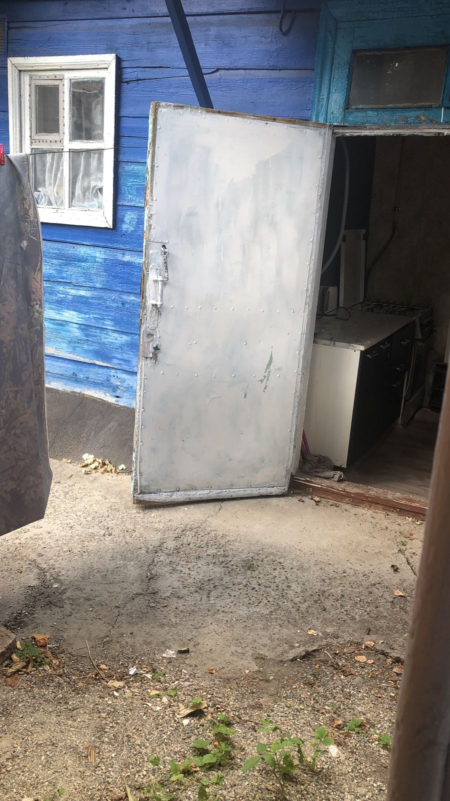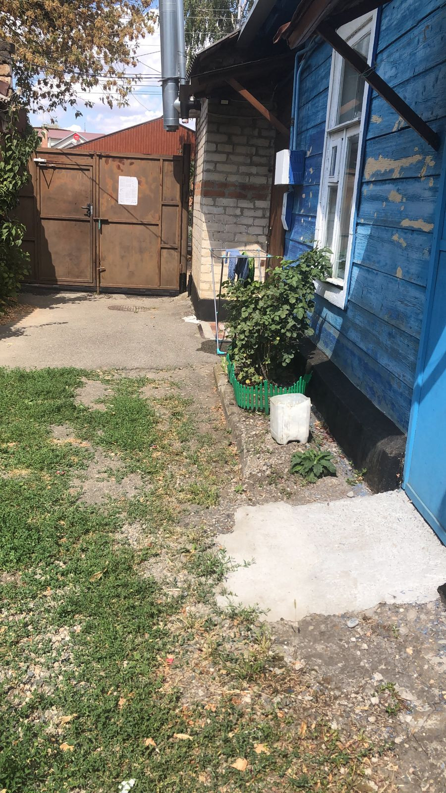Общий двор за забором, железные ворота.