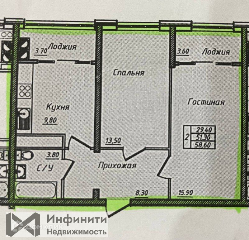 Общая площадь 60 м2