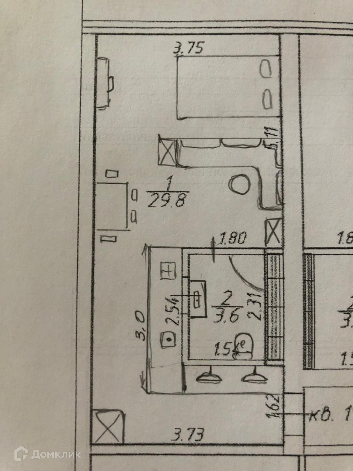 Общая площадь 33,4 м2