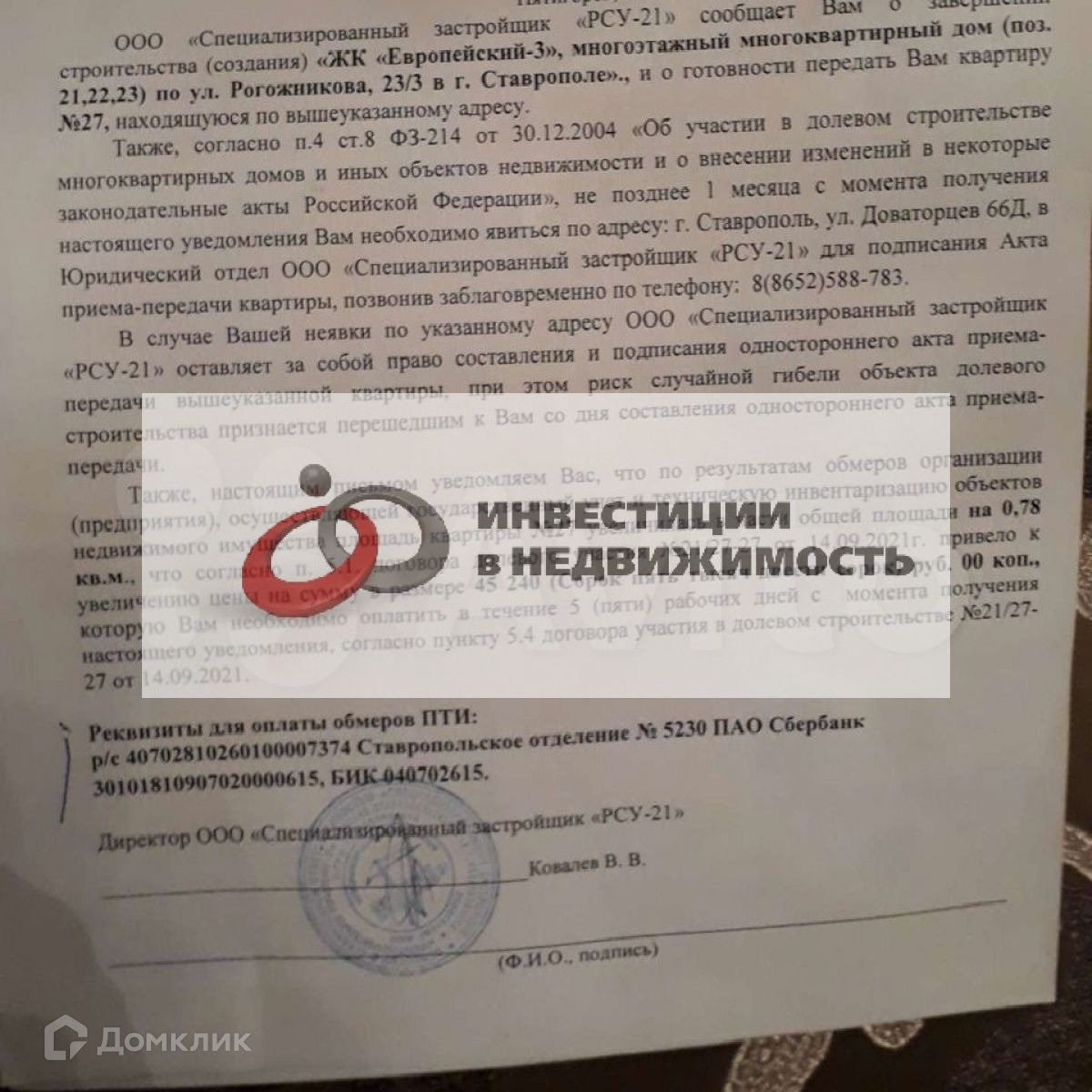 Объявление от застройщика.