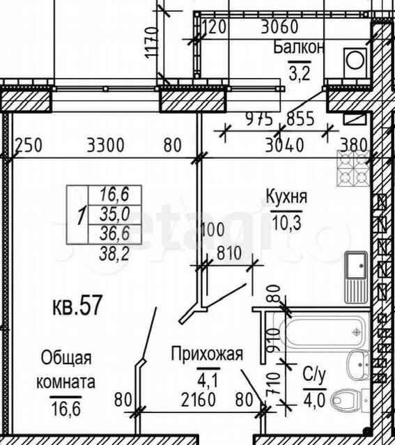 Общая площадь 38.2 м2