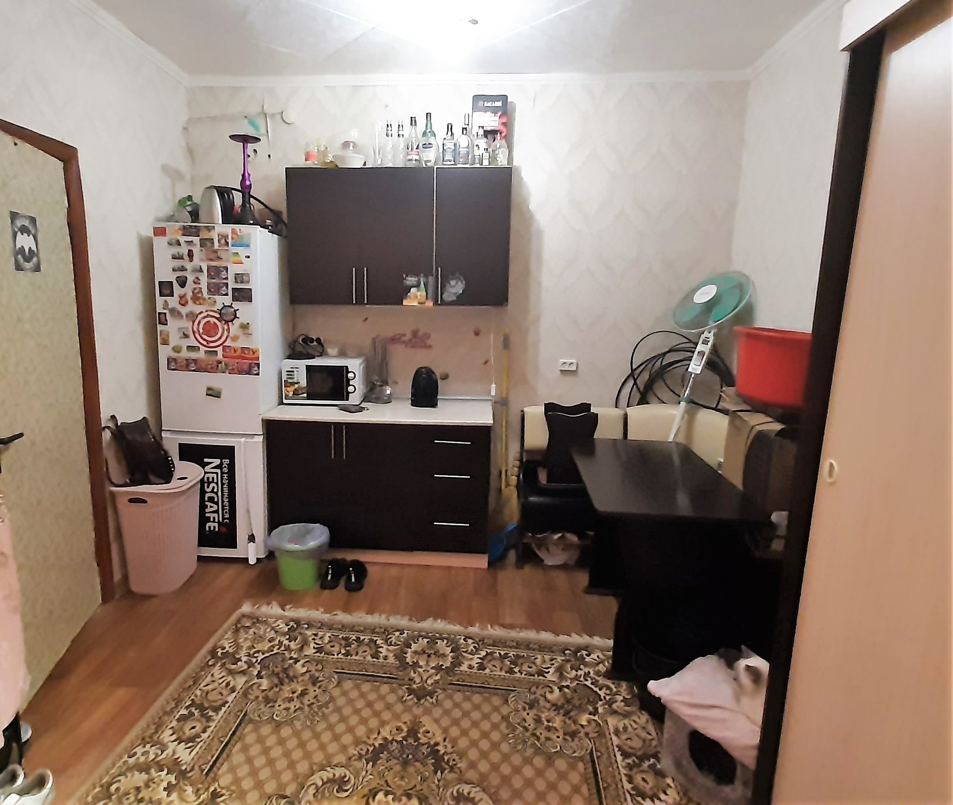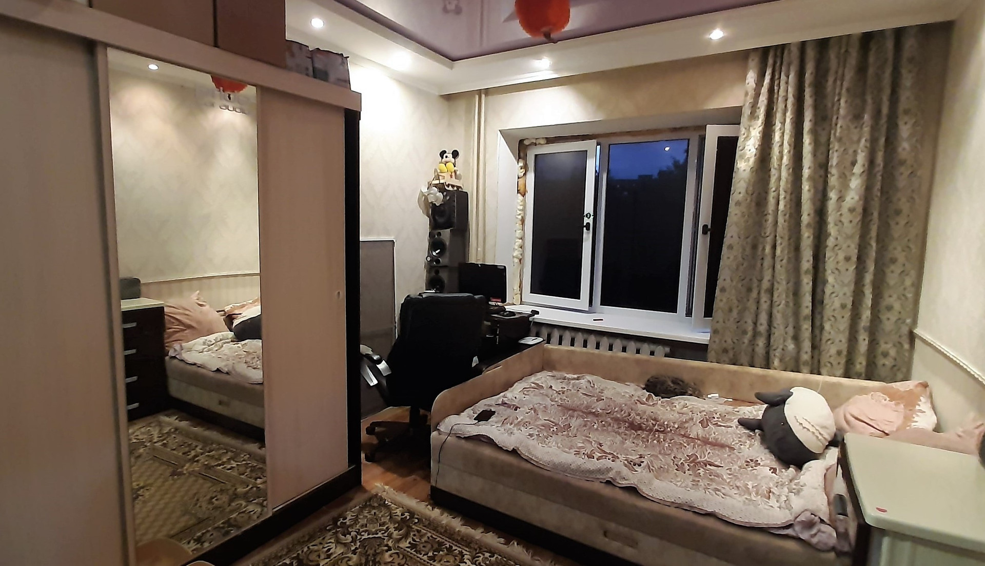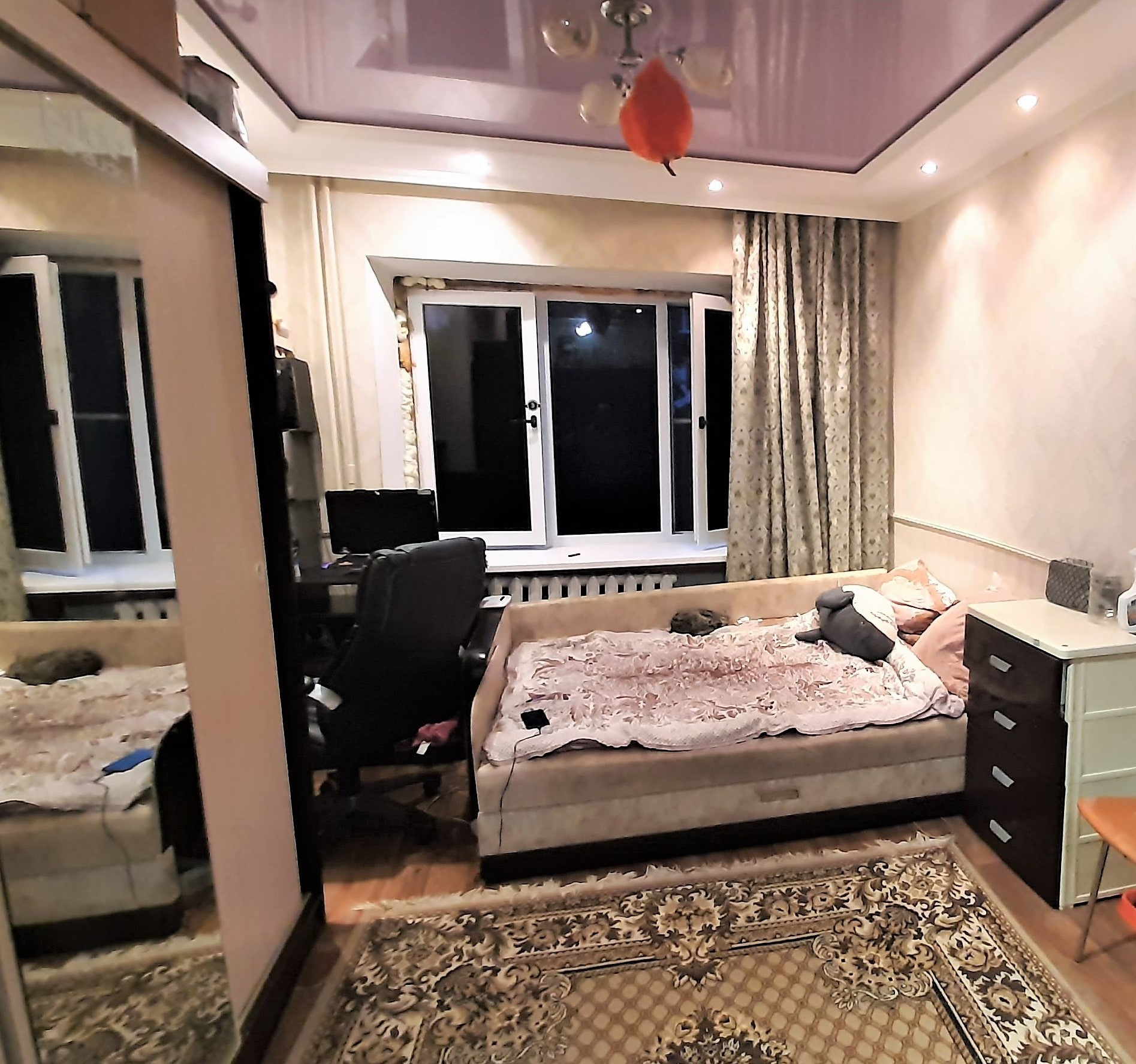 - Комната с ремонтом, натяжной потолок, пластиковое окно, ламинат. Остается частично мебель.