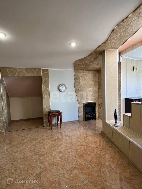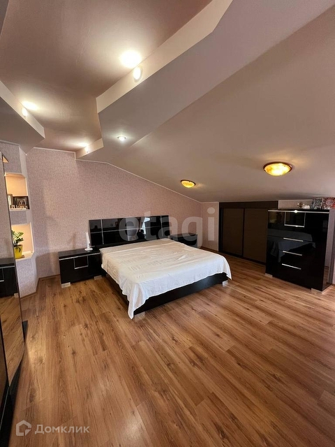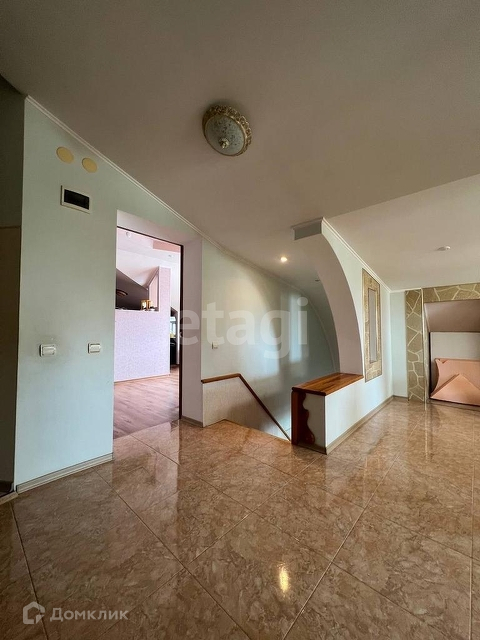 На 2 уровне расположены спальня, детская комната, эркер, гардеробная, большой санузел, у лестницы есть уютное пространство с электрическим камином.