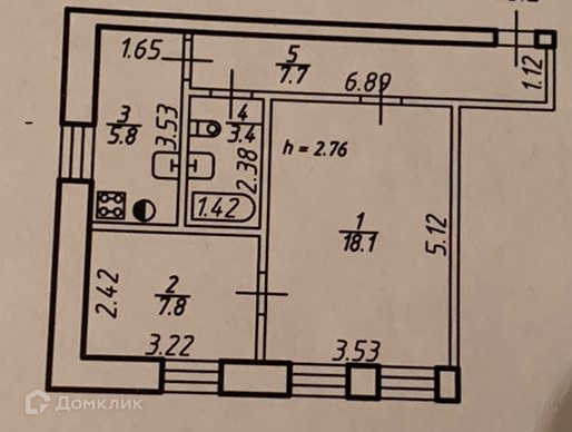 Жилая площадь 26 м2