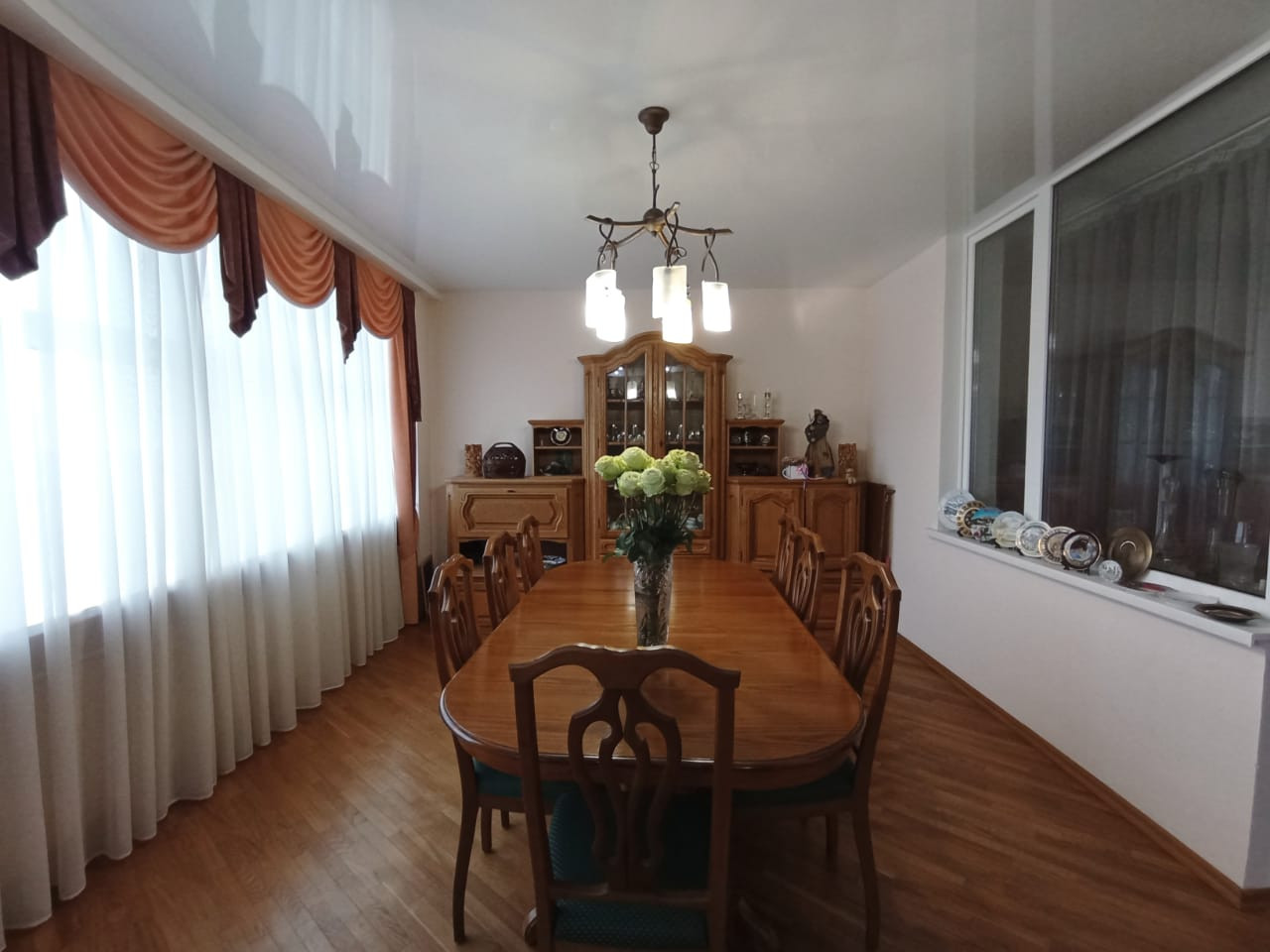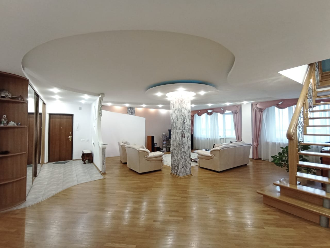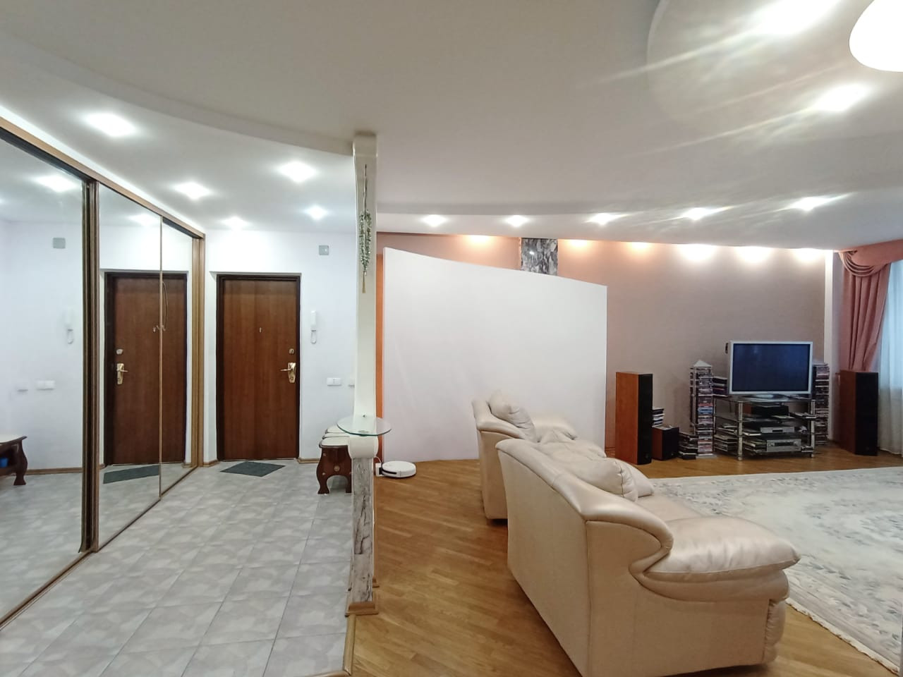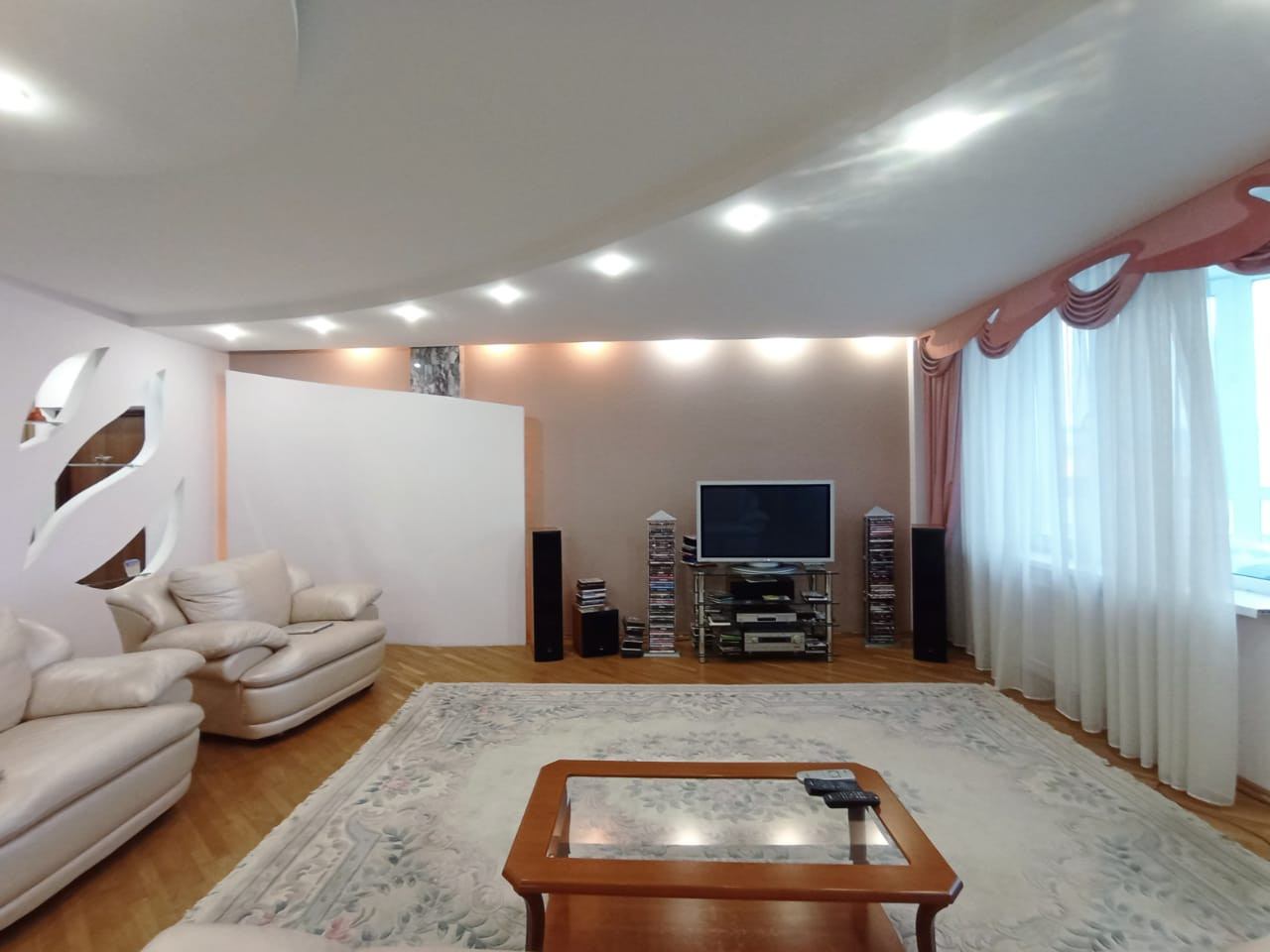 Ремонт выполнен в классическом стиле с использованием исключительно качественных, натуральных материалов - паркет, авторские потолки, выполненные с несколько уровней с достаточным количеством световых точек.