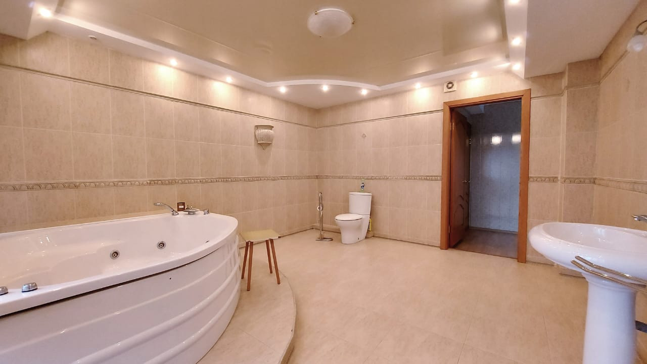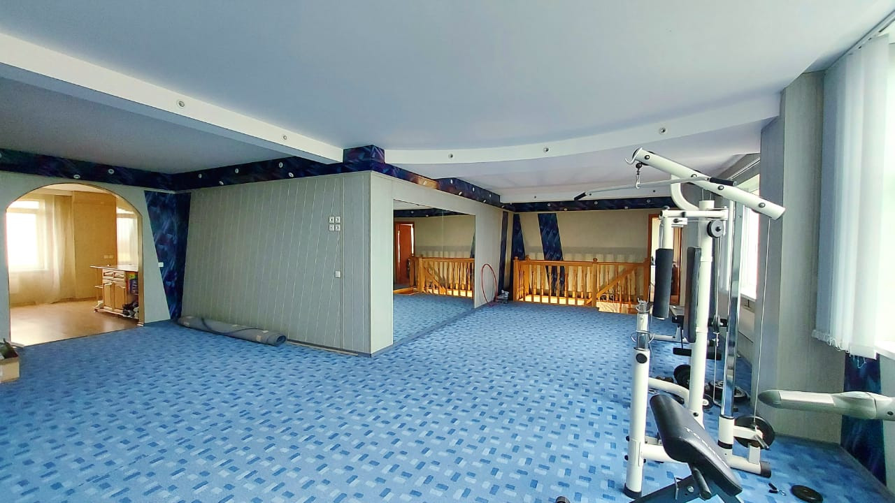 Несколько просторных спальных комнат, большой зал, кухня-гостиная, рабочий кабинет, гардеробная комната, спортивный зал, сауна, джакузи, три санузла.