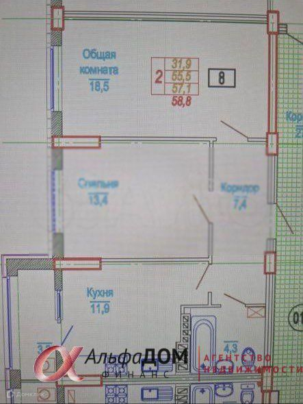 Общая площадь 58.8 м2