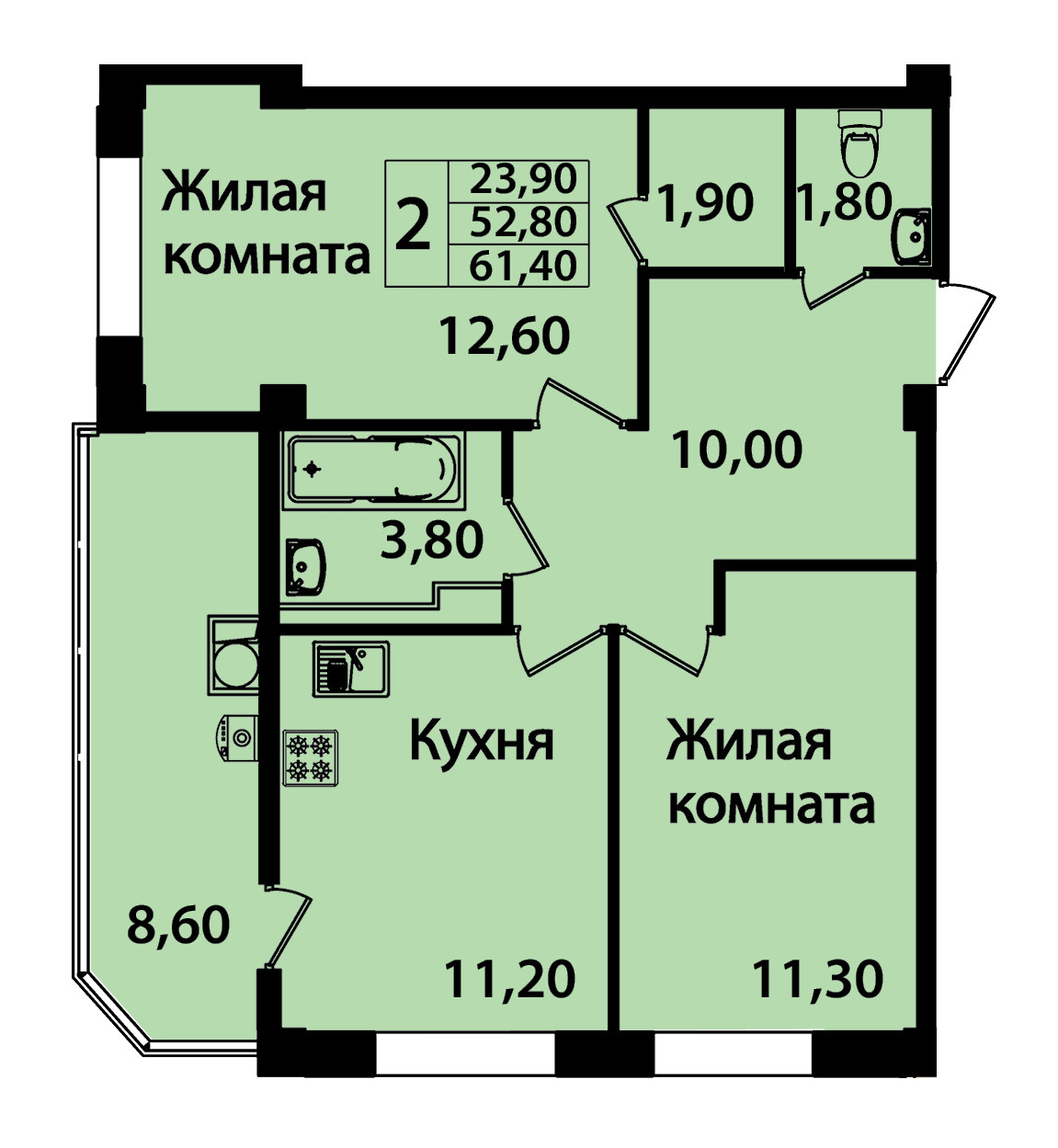 Общая площадь 61.6 м2