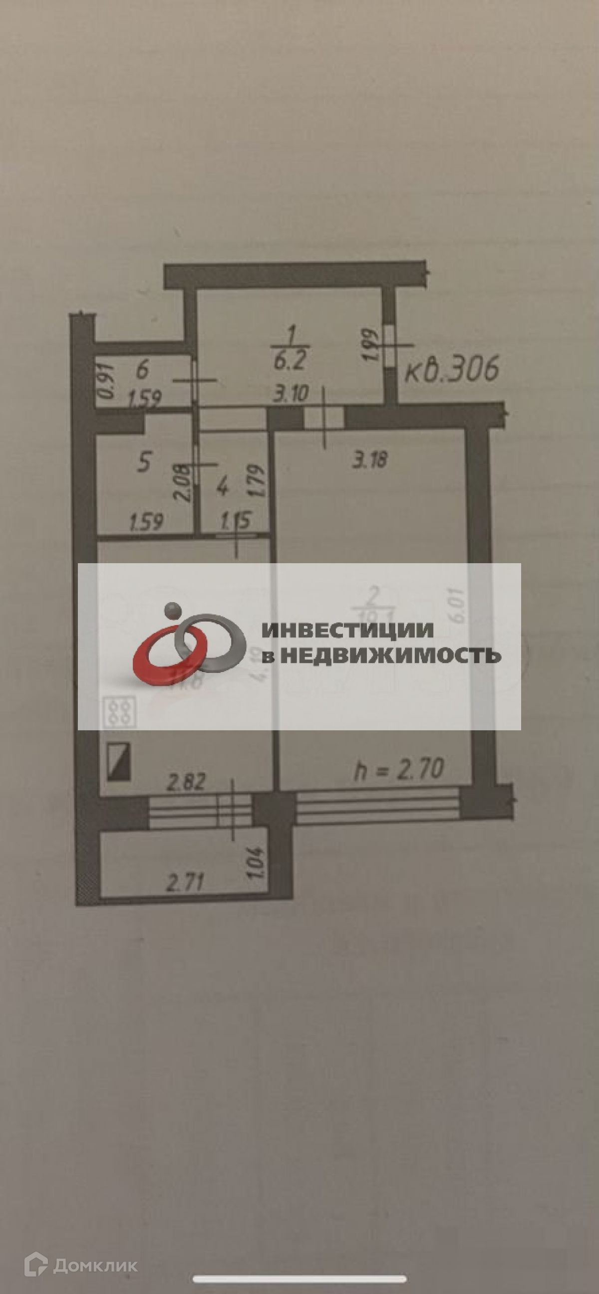 Общая площадь 43.6 м2