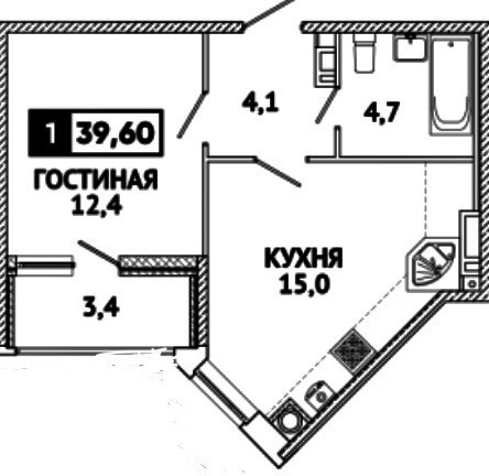 Общая площадь 40 м2