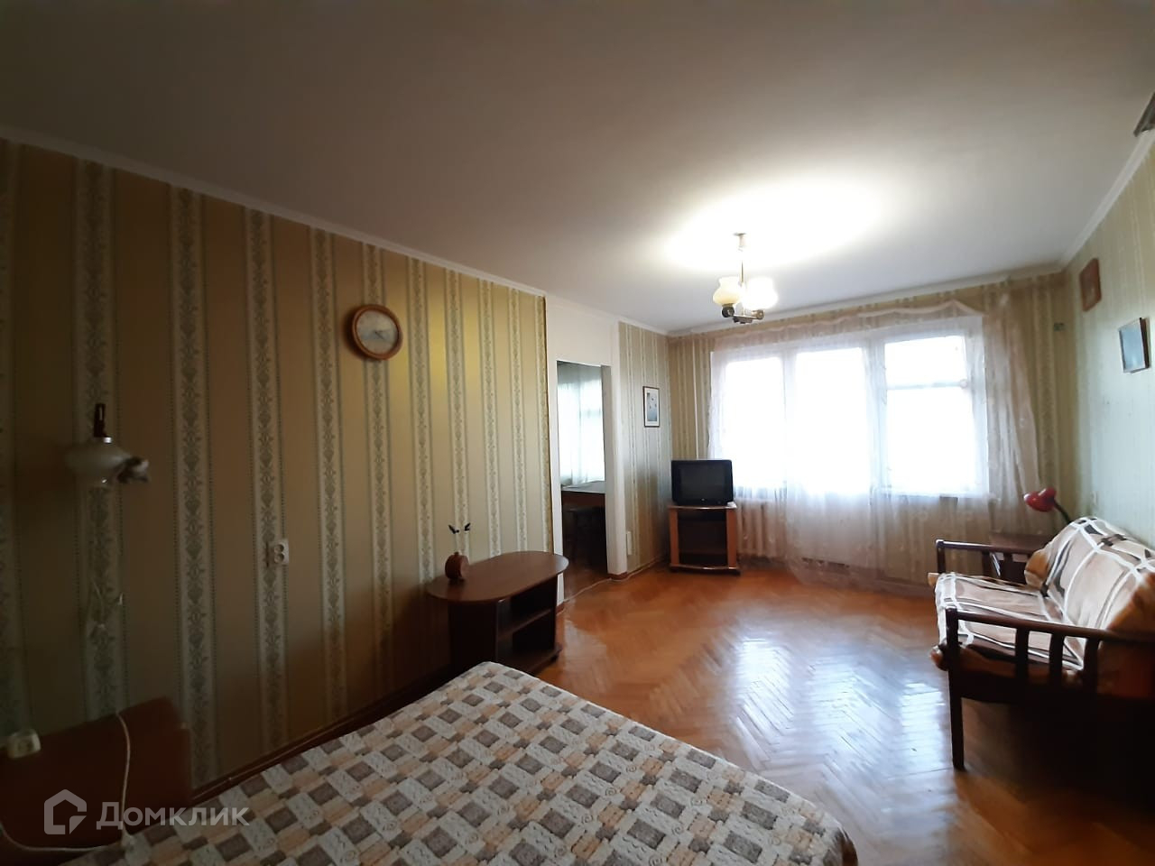 В квартире две смежные комнаты, одна из которых 19 кв.м, ,вторая 12 квм Есть возможность сделать перепланировку - разделить комнаты и сделать их изолированными. В квартире косметический ремонт, санузел совместный - в кафеле. На полу паркет. Площадь указана без балкона, балкон не застеклён.