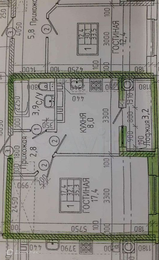 Общая площадь 35.8 м2
