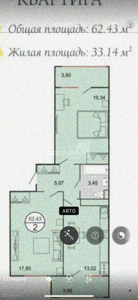 Общая площадь 62 м2