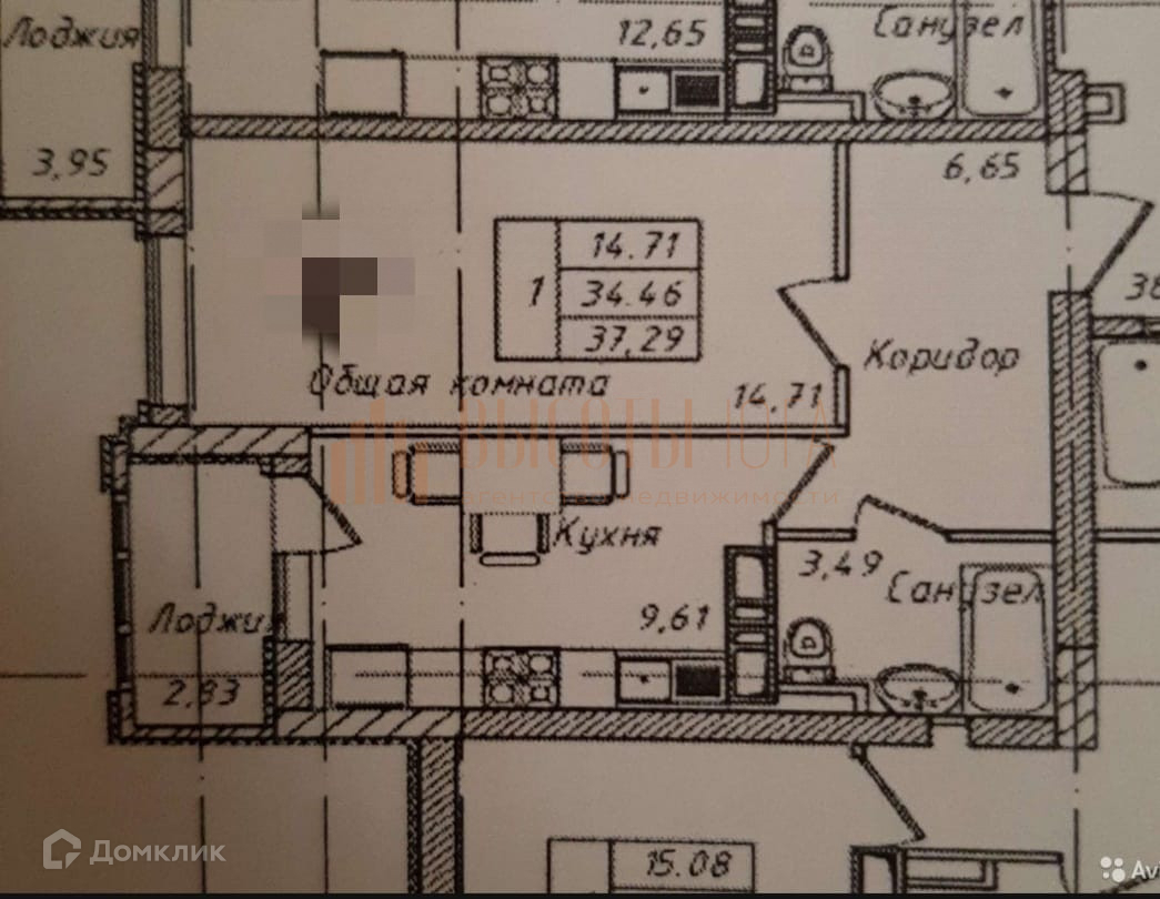 Общая площадь 37.3 м2