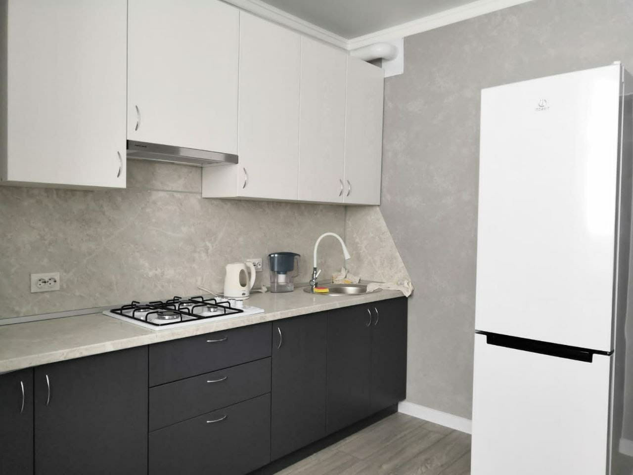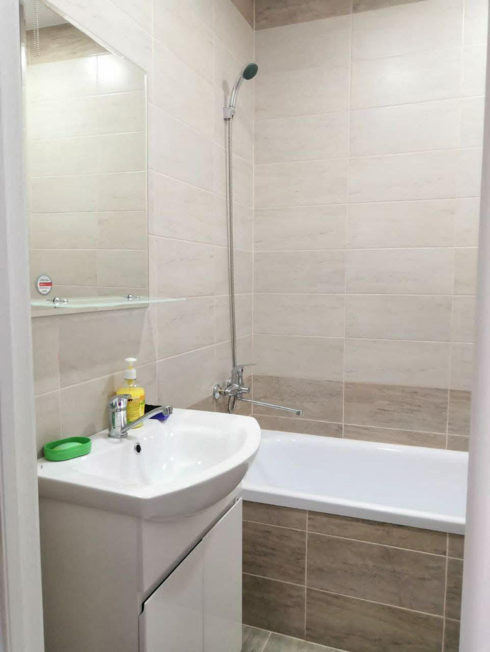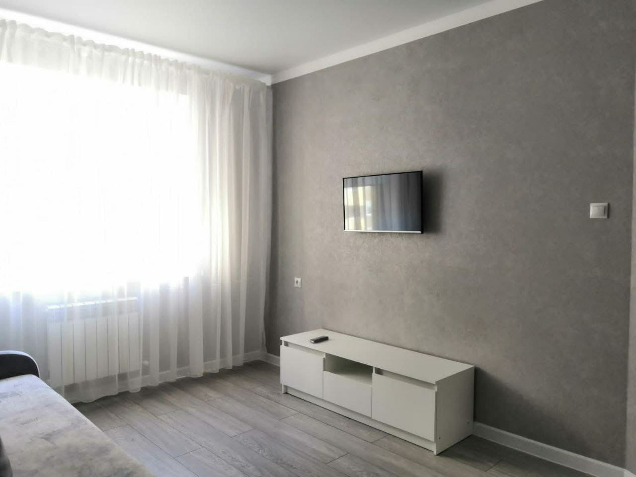 Квартира новая, со свежим ремонтом, однотонные обои по всей жил.площади, хорошая плитка в ванной комнате, ремонт делали для себя, но уехали  в другой город жить.