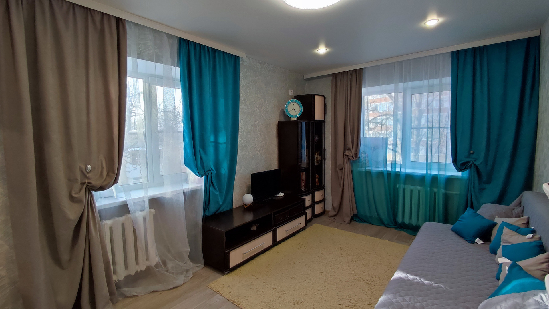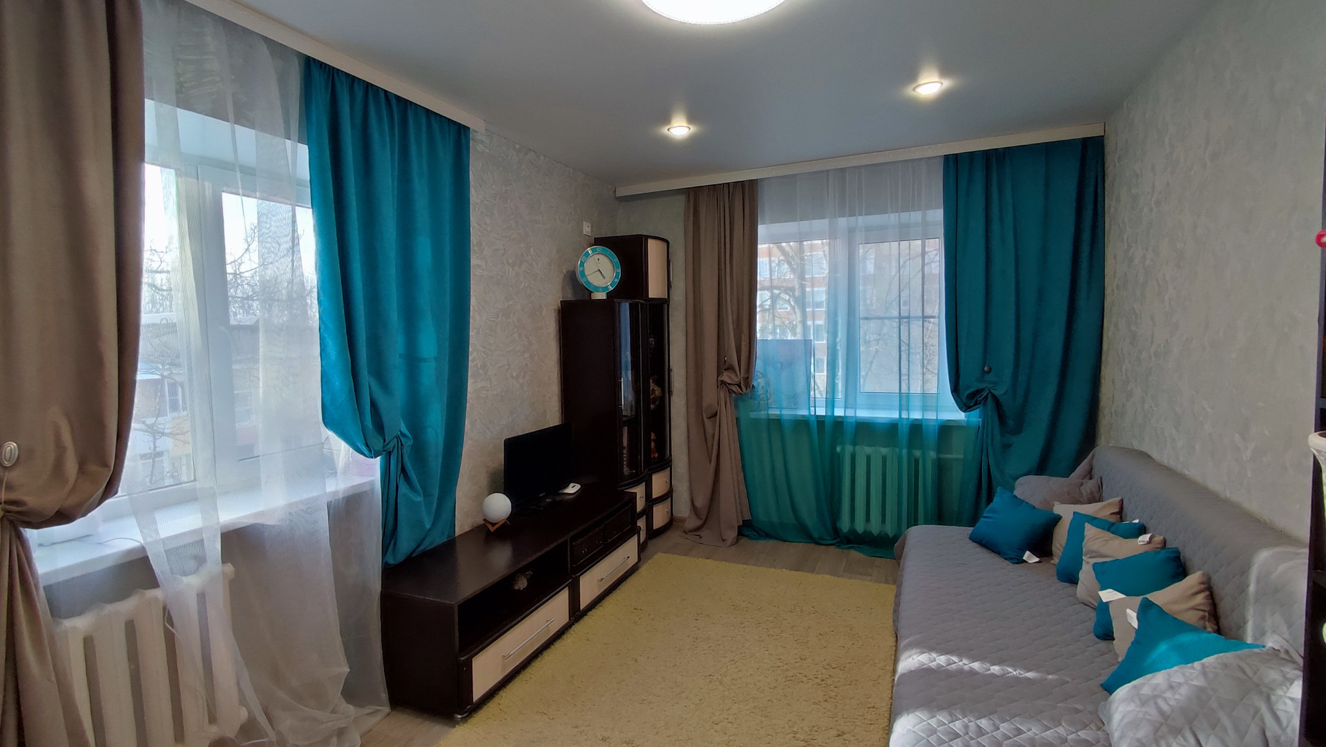 Квартира светлая, все комнаты правильной формы, в гостиной 2 окна.