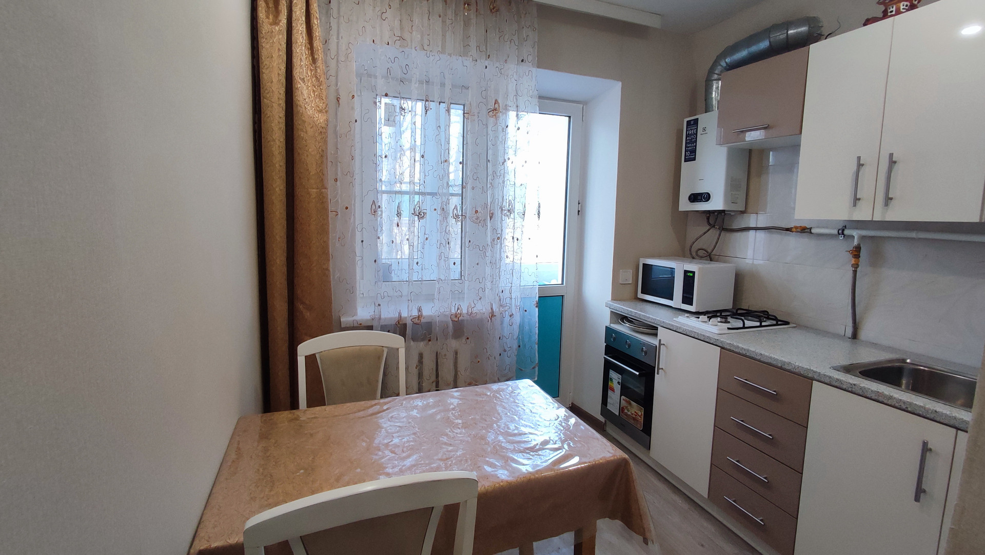 Квартира с капитальным ремонтом, полностью заменена проводка, выполнена штукатурка стен, заменены трубы, установлена новая колонка, счетчики и сейфовая дверь все окна металлопластиковые, натяжные потолки, балкон облагорожен.
